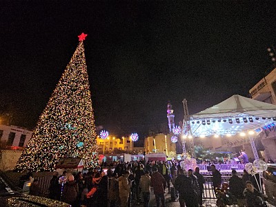 베들레헴, 예수탄생교회 앞 광장. (전쟁 후 2년만에 다시 성탄트리 점화.) 스탁톤에서 만난 동역자님들의 가정에 성탄의 기쁨과 하늘 축복이 넘치시길 기원합니다~~