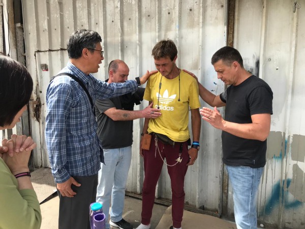 텔아비브 거리의 마약 중독자들을 위해 기도하시는 선교사님