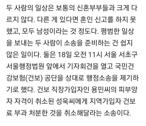 어느 평범한 부부라고 기자가 기사를 썼는데 남자 둘이 사는 것이 평범한 부부인가?