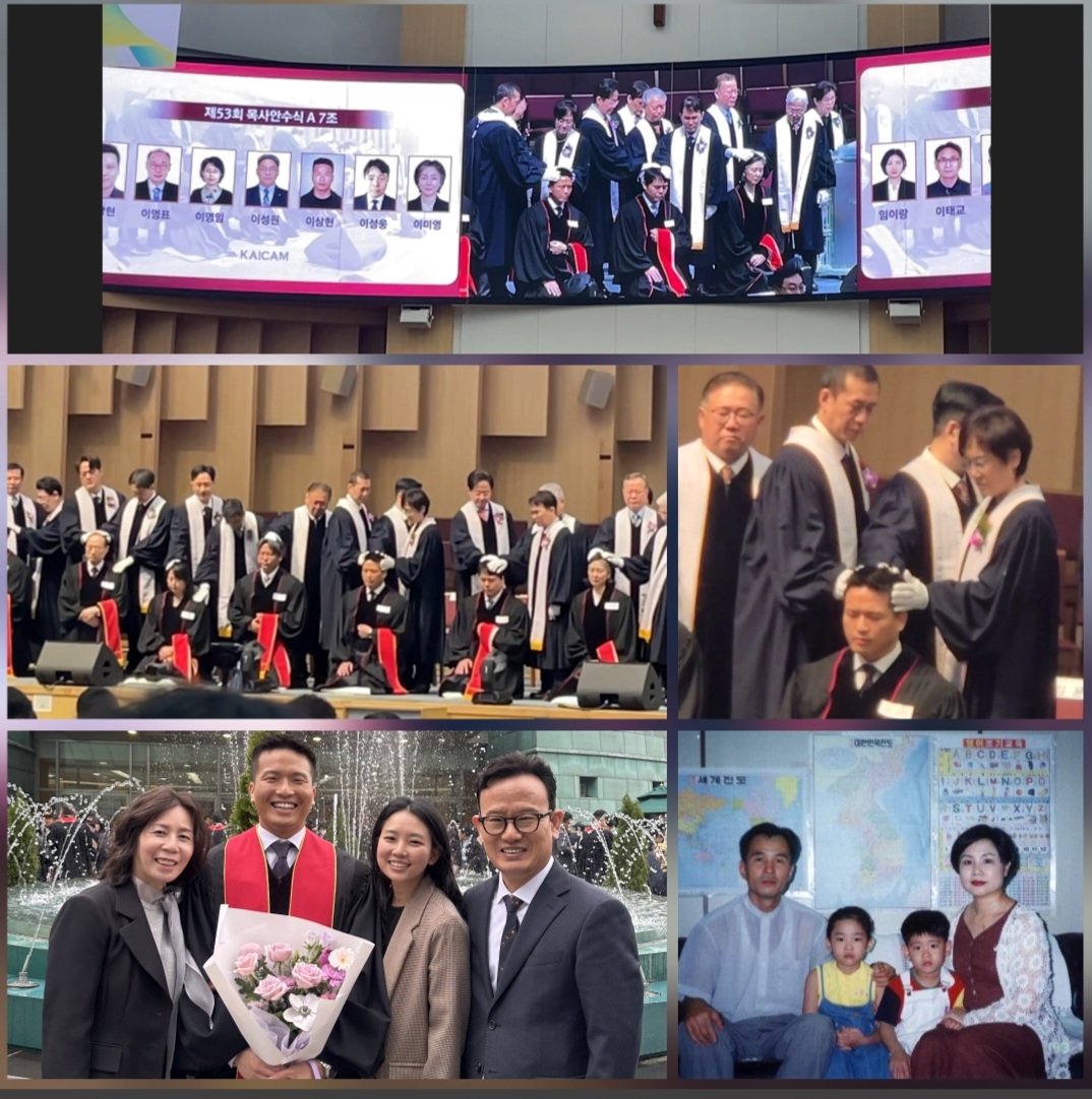 제 딸 다솔이의 남편 이상현 전도사가 지난 4월 20일 분당 할렐루야교회에서 목사 안수를 받았습니다.