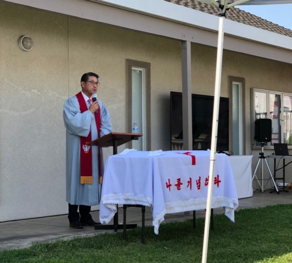 9월 20일 주일부터 교회 정원에서 예배를 드리고 있습니다. 오랜만에 성찬식까지 할 수 있는 은혜를 주셔서 감사합니다.