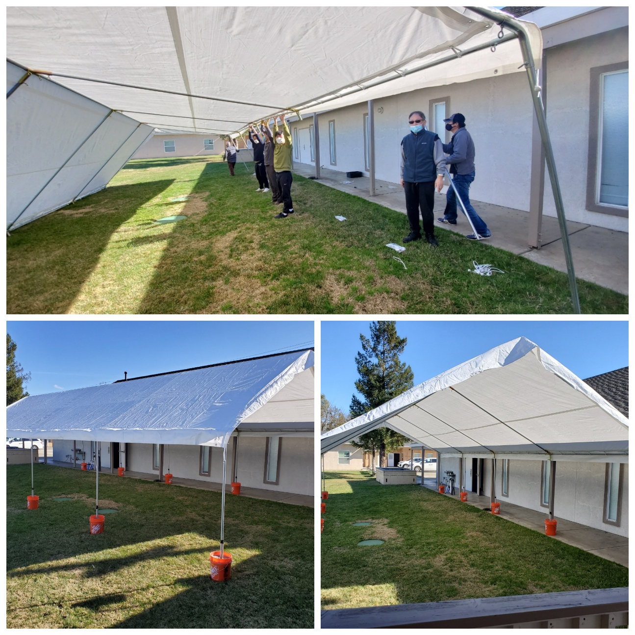 예배를 위해 천막을 치는 성도님들