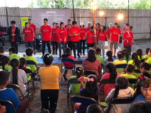 토요일 오후 집회에서 선교팀이 찬양을 하려고 준비하고 있습니다.
