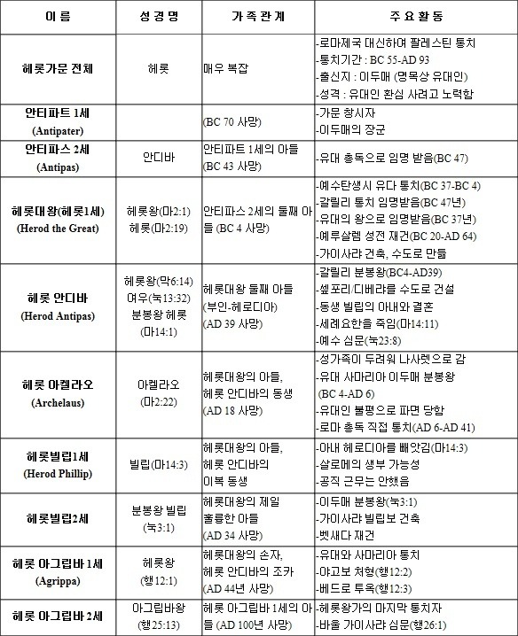 여기도 헤롯 저기도 헤롯 도대체 누가 누구인지 확인하기가 어려운 경우가 있습니다.