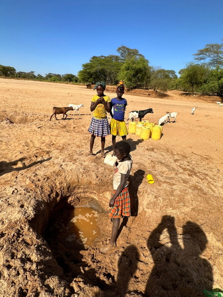 케냐에서 사람들이 물을 떠 가는 곳입니다. 강이 말라 물이 없어서 강바닥이라도 파서 물을 마십니다.